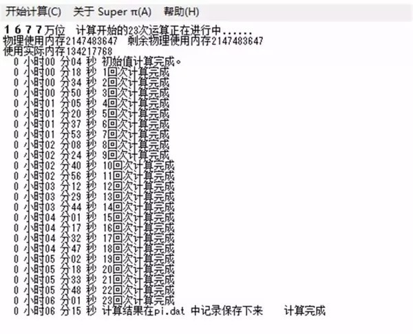 Ryzen 5 1600跑完23次1677万位计算,一共用时6分15秒。